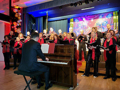 way“ (Frank Sinatra) führten die Sängerinnen und Sänger das Publikum in die Traumfabrik Hollywood mit „Somewhere over the rainbow“ (Der