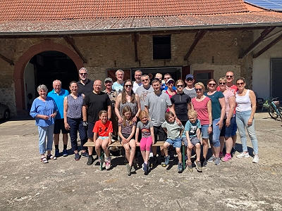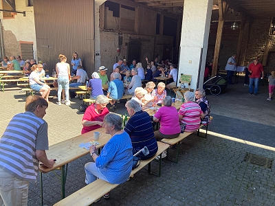 Hof der Familie Roth gemeinsam mit der Wandergruppe und den dazu gestoßenen übrigen Vereinsmitgliedern und Freunden vom Gesangverein